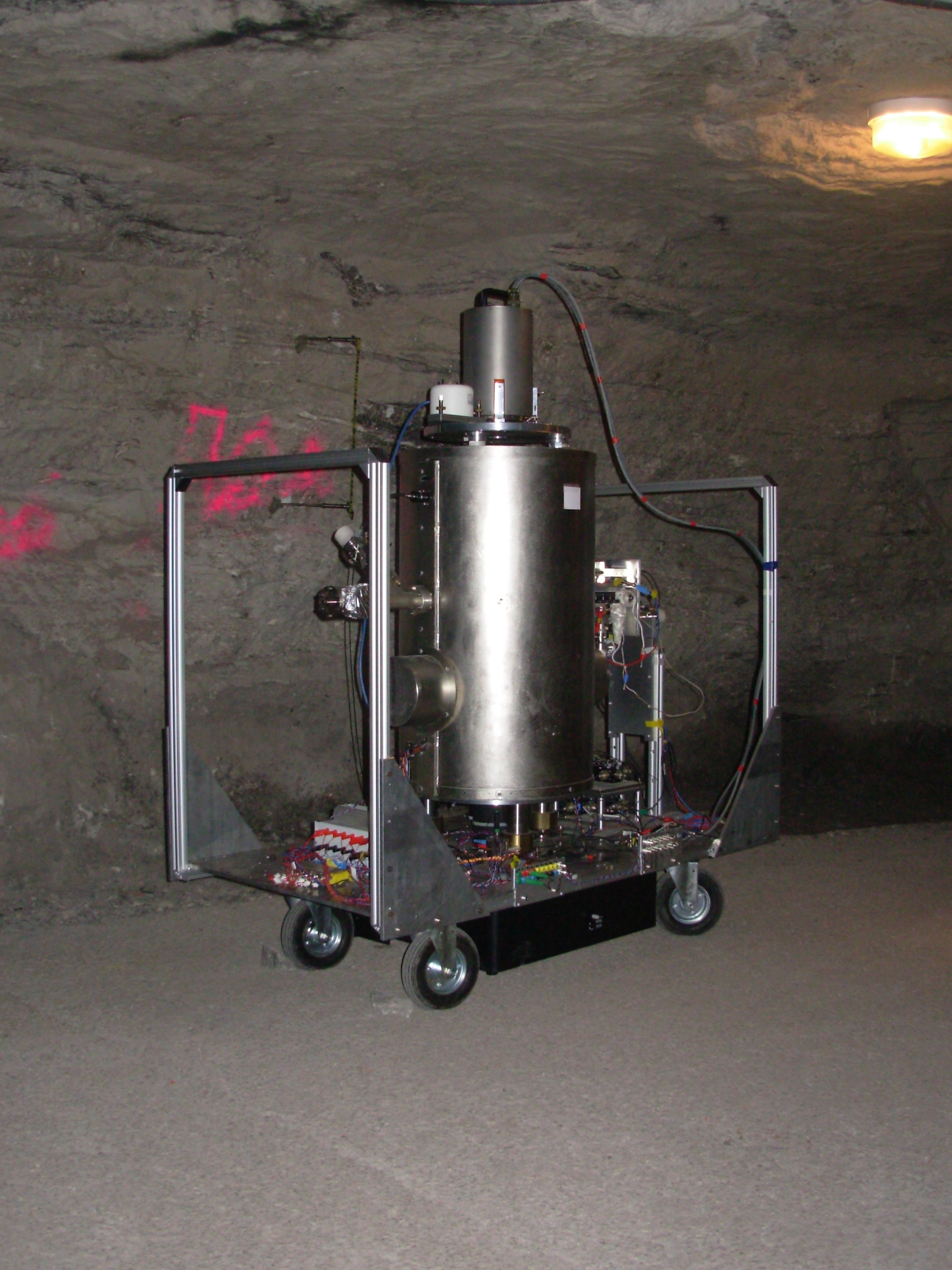 Laser source makes it possible to manipulate caesium atoms. It is linked to the caesium tube by means of optical fibres.