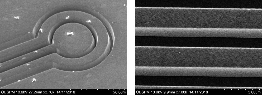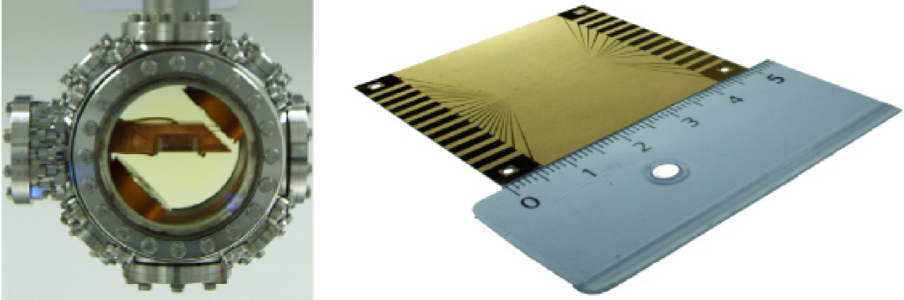 Après la définition du motif de fils pour le piégeage et refroidissement, et les fonctions d’interférométrie, nous utilisons la déposition de métal par évaporation pour réaliser les microfils.