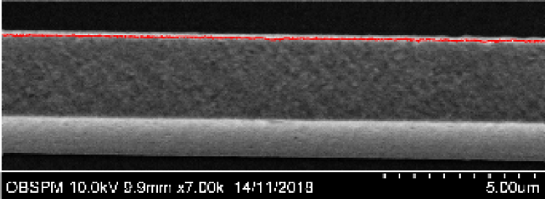 Par le biais d’un traitement des image obtenues au microscope électronique, nous pouvons déterminer la rugosité de microfils fabriqués. De plus, nous pouvons également calculer, à l’aide du profil de l’échantillon, la variation du champ magnétique généré par les défauts de la paroi des fils en fonction de la distance à la puce. Dans le cas d’une longue variation spatiale, c’est-à-dire un vecteur d’onde spatiale k petit, les fluctuations sont trop petites pour être observé ce qui diminue les effets du champ magnétique rugueux. De la même manière, dans le cas de courtes variations spatiales, c’est-à-dire un vecteur d’onde grand, les effets du champ se compensent.