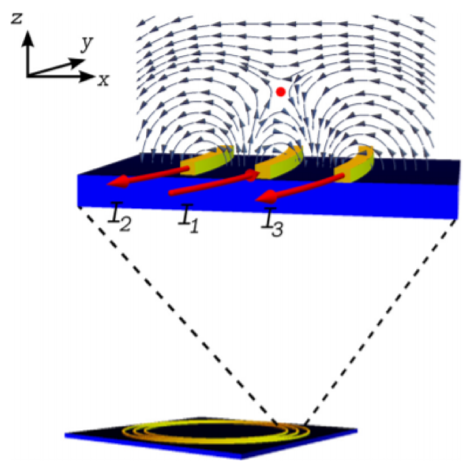 Dans ce travail, nous démontrons qu’un guide magnétique stable peut être réalisé dans une puce à atomes sans appliquer de champ externe de biais. Un tel guide magnétique peut être réalisé en utilisant trois microfils parallèles, alimentés par des courants modulés ayant une différence de phase bien définie entre eux. Pour démontrer la stabilité du guidage, nous avons trouvé une solution périodique stable qui nous permet de linéariser la dynamique non linéaire du mouvement de l’atome et du moment magnétique de celui-ci. Comme détaillé dans notre article publié, Phys. Rev. A 97, 033405 (2018), la nature périodique de la dynamique du système nous indique qu’ici nous sommes concernés par une stabilité orbitale. Pour contourner la difficulté de trouver une expression analytique pour les valeurs propres de la matrice de monodromie de la dynamique du système, nous avons introduit une transformation de Lyapunov des variables du système, à partir de laquelle nous avons dérivé une équation d’état pour les paramètres systémiques du guide modulé.