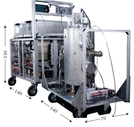 | Avec le développement du premier gyromètre à atomes froids, nous avons démontré la possibilité de mesurer l’ensemble des axes d’inertie (trois composantes de rotation et trois composantes d’accélération) sur le même appareil et avec des performances comparables à celles des technologies standards (gyromètres optiques et accéléromètres à masses mécaniques). La nouvelle expérience de gyromètre à très grande aire a permis d’atteindre un niveau de stabilité record, ouvrant notamment la voie à des nouvelles perspectives de tests de physique fondamentale. |