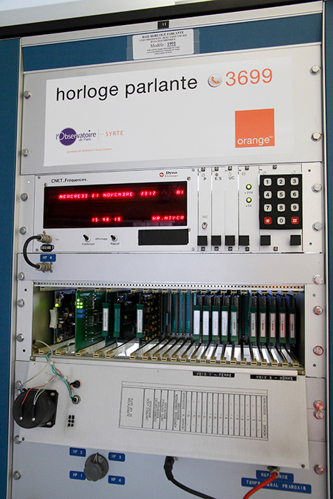 L’horloge parlante de l’Observatoire de Paris a permis de diffuser l’heure légale française en appelant le numéro de téléphone 3699. ce service a été arrêté le 1er juillet 2022.